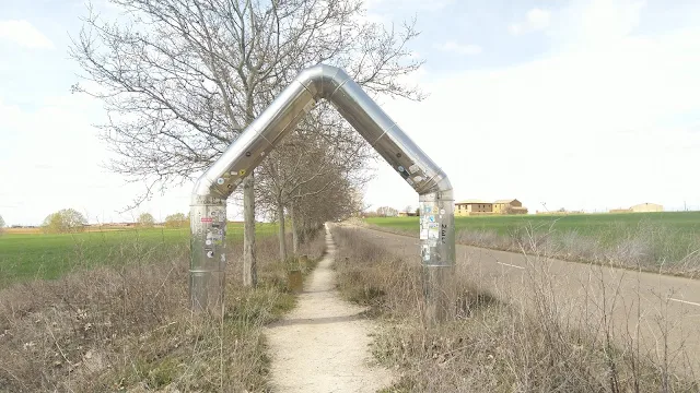 kilómetros que me separan de Sahagún, encuentro éste arco, que según dicen marca la mitad del Camino de Santiago.